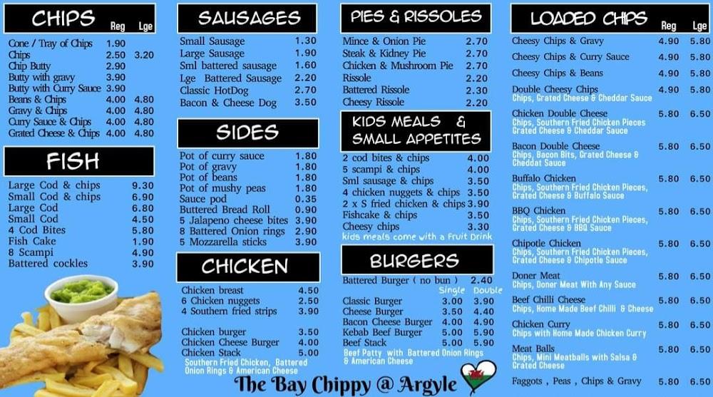 The Bay Chippy sits on Argyle Street in Swansea, specifically at 31 Argyle St, SA1 3TB. Its prime location makes it a convenient stop for those enjoying the nearby beach or simply seeking a comforting meal in a friendly setting. The establishment thrives on family values and community spirit, proudly serving its loyal customers with freshly cooked fish and chips that evoke nostalgia and comfort. High standards have kept the shop thriving, backed by a strong commitment to hygiene and quality. With accessibility in mind, The Bay Chippy welcomes everyone, featuring a wheelchair-accessible entrance alongside various service options, including no-contact delivery and takeaway. It's a spot that endeavours to cater to families and lone diners alike, making it a cherished fixture in the local food landscape. Plus, the shop’s kids’ menu ensures that even the little ones leave with full bellies. Regulars know to drop in for their signature crispy battered cod and classic chips, a recipe that's perfected over decades. The shop not only serves exquisite food but also supports local producers, aligning its offerings with sustainable practices. You can easily grab a quick meal or enjoy a relaxed sit-down experience with your family and friends.